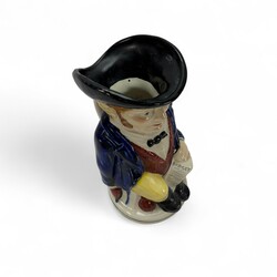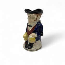 | Omschrijving | Polychroom aardewerk schenkruik in de vorm van een zittend figuur, bekend als een ‘toby jug’, niet gemerkt, Engeland, 19e eeuw |