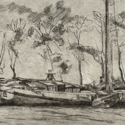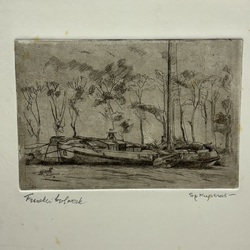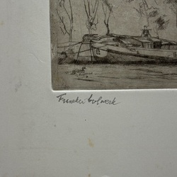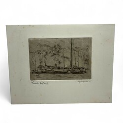| Omschrijving | Sjoerd Kuperus (1893-1988). Een ets op papier. Het Bolwerk te Franeker met skutsje. Gesigneerd in potlood. |
