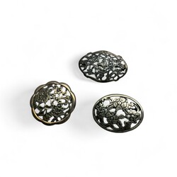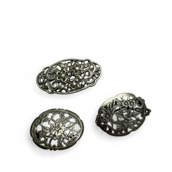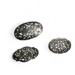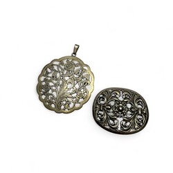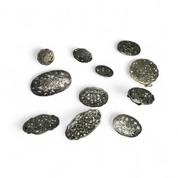 | Omschrijving | Tien broches en één hanger, alle exemplaren met opengewerkte florale motieven, waaronder zilver |