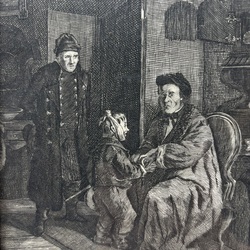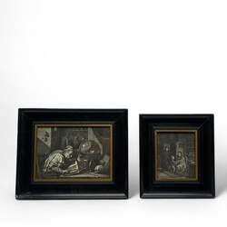 | Omschrijving | Twee 19e eeuwse gravures naar antieke voorbeelden. De alchemist, naar David Tenniers en kleinkind bij grootvader op bezoek. In zwarte lijsten. |