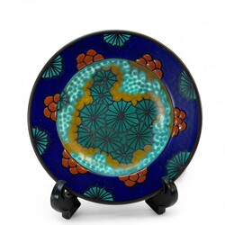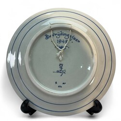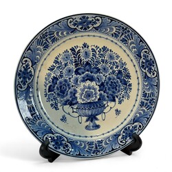 | Omschrijving | Lot van twee 20e eeuwse aardewerken borden: één plateel met art nouveau decor, gemerkt Zuid-Holland. En één wandbord met blauw-wit floraal decor, gemerkt Porceleyne Fles, bevrijdingsbord 1945 |