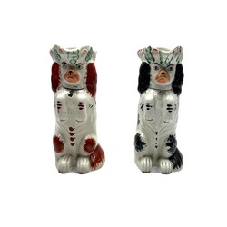 | Omschrijving | Twee Engels aardewerk Staffordshire ‘toby jug pitchers’ met Cavalier-king charles spaniëls, tweede helft 19e eeuw |