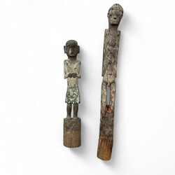 | Omschrijving | Twee 20e eeuwse gestoken houten palen, één gepolychromeerd. Beide vermoedelijk Indonesisch/Papua |