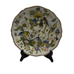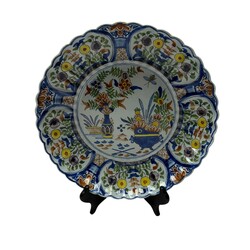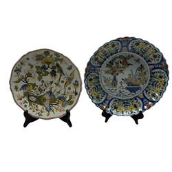 | Omschrijving | Lot van twee vroeg 20e eeuwse Tichelaar Makkum wandborden, beide polychroom gedecoreerd. |