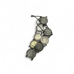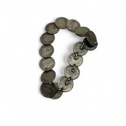 | Omschrijving | Twee zilveren dubbeltjesarmbanden: armband met 11 dubbeltjes periode 1937-1941, en armband met 16 dubbeltjes periode 1934-1941, |