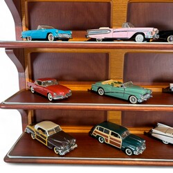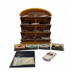 | Omschrijving | Verzameling van 17 Amerikaanse modelauto's, geïnspireerd op modellen uit de jaren '50, waaronder de complete serie 'Classic Cars of the Fifties' van 12 modelauto's, uitgegeven door Franklin Mint, inclusief bijbehorend houten etaleermeubel, verder onder meer vier modelauto's in originele verpakkingsdoos: 'Ford Thunderbird', 'Buick Super 1950', 'Cadillac Eldorado Seville', en 'Studebaker Hard-Top 1957', inclusief boek 'The Classic Cars of the Fifties', en bijbehorende flyertjes |