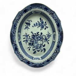 | Omschrijving | Lot van vier 18e -eeuwse Chinees porseleinen (onder)schotels, Qianlong periode (1735-1796), allen met onderglazuur blauw decor van bloemen en geometrische motieven |