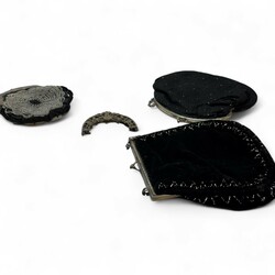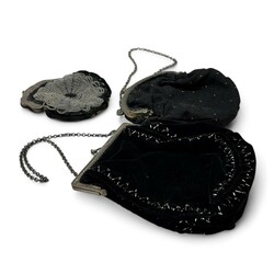 | Omschrijving | Lot van vier 19e en 20e eeuwse tweede gehalte (835/1000) zilveren tasbeugels, waarvan drie aan tasjes. |