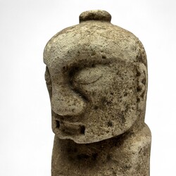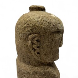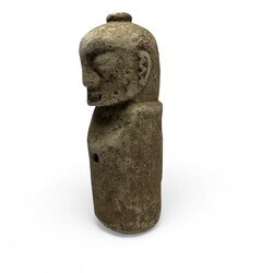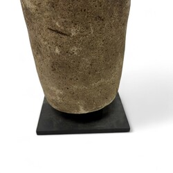 | Omschrijving | Een antiek zandstenen sculptuur, mogelijk vooroudersculptuur. Gemonteerd op een metalen basement. |