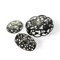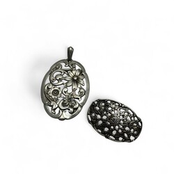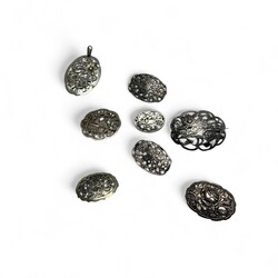 | Omschrijving | Zeven broches, waaronder zilver, daarbij: tweede gehalte zilveren hanger met opengewerkt floraal decor |