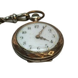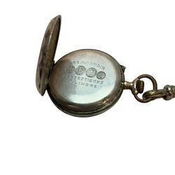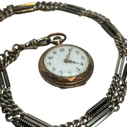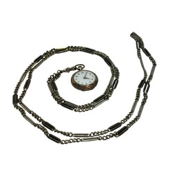 | Kavel | 1290. Zilveren dameshorloge met facetrand en ketting |