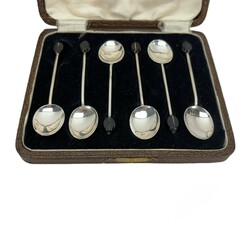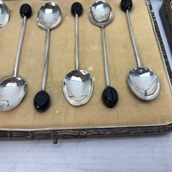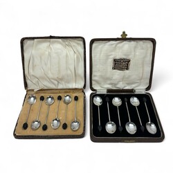 Lot van twee sets eerste gehalte (925/1000) zilveren Engelse koffielepeltjes