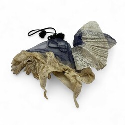 | Omschrijving | tweede gehalte zilveren oorijzer, Noord-Holland, onduidelijk meesterteken, jaarletter 1863, daarbij: diverse kanten klederdrachtmutsen, in twee papieren doosjes met gemarmerd decor |