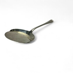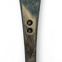 | Omschrijving | Tweede gehalte zilveren spiegeleischep, meester Zilverfabriek Voorschoten, jaarletter 1931 |