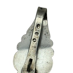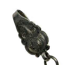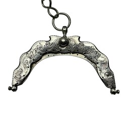| Omschrijving | Tweede gehalte 835/1000) zilveren tasbeugel met jurkhaak, beide gegraveerd en op dezelfde wijze gekeurd met pseudo-keuren |