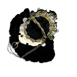 | Omschrijving | Een 19e tweede gehalte (835/1000) zilveren kindertasbeugel aan fluwelen tas. Beugel opengewerkt, aan de achterzijde gekeurd met minervakopje, aan de binnenzijde met pseudokeuren en jaarletter D (1888) en meesterteken JL13 |