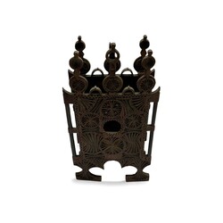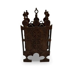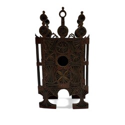 | Omschrijving | Een antieke Fries kerfsnede houten zakhorlogehouder, met gestoken decor, polychroom beschilderd, met initialen 'M.v.d.B' en datering '1663'. Vermoedelijk 19e eeuws. |