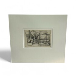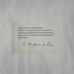 | Omschrijving | Potloodtekening op papier, voorstelling van een boerderij met koeien. Ongesigneerd werk van Boele Bregman (Aengwirden 1918 - Heerenveen 1980). Met echtheidsverklaring C. Bregman-de Vries, weduwe Boele Bregman. |