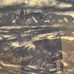 | Omschrijving | Houtskooltekening op papier, voorstelling van een Fries dorp. Rechtsonder gesigneerd Bouke van der Sloot (Franeker 1908 - Leeuwarden 1995), gedateerd 1982. In zilverkleurige profiellijst. |
