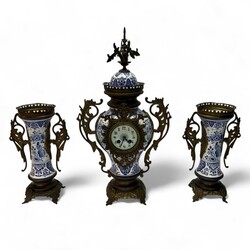 | Kavel | 1427. Driedelige aardewerken pendule, ca. 1880 |