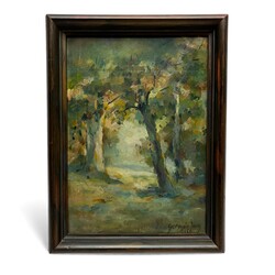 | Omschrijving | Germ de Jong (1886–1967), Vondelpark bij herfst, olie/paneel, gesigneerd en gedateerd 1935, verso beschreven, ingelijst |