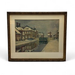 | Omschrijving | Aquarel op papier, voorstelling van het oude centrum van Drachten in de winter, ca. 1930. Rechtsonder gesigneerd Jan Planting (Drachten 1893-1955). |
