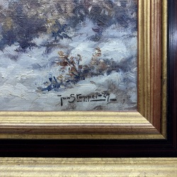 | Omschrijving | Schilderij, olieverf op doek. Voorstelling van een polderlandschap in de sneeuw, met een molen op de achtergrond. Verso titel 'sneeuwfantasie', rechtsonder gesigneerd Jan Stapper (Purmerend 1875 - 1964), gedateerd 1947. In bruine en goudkleurige profiellijst. |