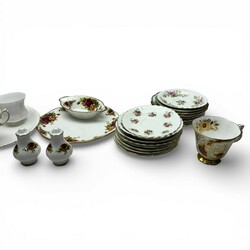 | Omschrijving | Lot divers Royal Albert, bestaande uit tien kopjes, tien schoteltjes, zeventien schoteltjes, twee schapen, een Old Country Roses schaaltje en een peper- en zoutstrooier. |