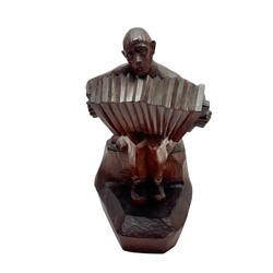 | Omschrijving | Een vroeg 20e eeuws uit hout gestoken sculptuur, voorstelling van een zittende, accordeonspelende man. Op de voet gesigneerd Paul Stoffijn (Brussel 1884 - 1945), gedateerd 1916. Herkomst: vermoedelijk Christie's Amsterdam, veiling 8 november 2005. |