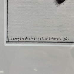 | Omschrijving | Pastel op papier, titel ‘Jongen die hengel uitwerpt’. Rechtsonder gesigneerd Rienold Postma (Houwersyl 1950 - Rolde 2025), gedateerd 1996. |