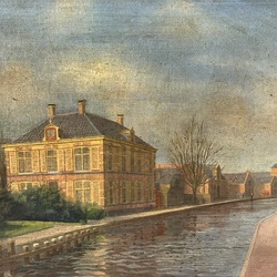 | Omschrijving | Schilderij, olieverf op paneel. Linksonder gesigneerd Roelf Gerbrands (Groningen 1891 - Haarlem 1954). Verso tekst ‘Aangeboden door de Ver. Volksonderwijs afd. Boskoop en de Oudercommissie’ - ‘Boskoop, 12 januari 1932’. Met een krantenartikel, aangeboden aan afscheidend voorzitter P. Glas bij zijn afscheid in Boskoop. Betreft Pieter Glas, predikant te Boskoop van 1920 tot 1932. |