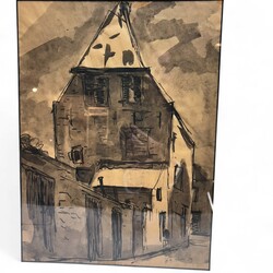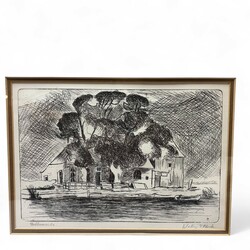 | Omschrijving | Lot van twee kunstwerken: Inkttekening op papier, voorstelling van een huis. Rechtsonder gesigneerd Theo van der Meulen (Helmond 1923-1987), gedateerd 1970. Met daarbij een ets, 'Dokkumer Ee', ook een werk van Theo van der Meulen. |