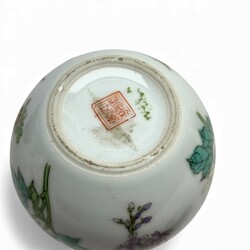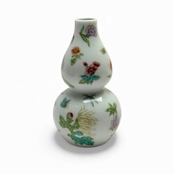 | Afmetingen | Famille rose schotelje is 2,5 cm hoog en 11 cm doorsnede. Blauw/wit schoteltje is 6 cm hoog en 10 cm doorsnede. Kalabas vormige vaas is 14 cm hoog. |
