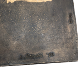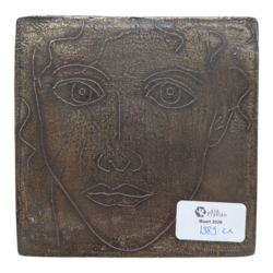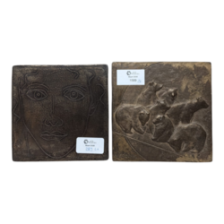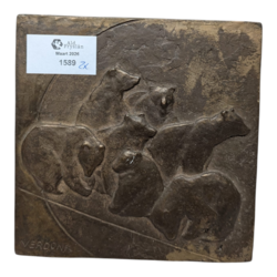 | Omschrijving | Lot van twee bronzen plaquettes, één met voorstelling van diverse (ijs)beren. Rechtsonder gesigneerd Nelli Verdonk (1934). En één met voorstelling van een gestileerd gezicht, aan de achterzijde gesigneerd Lidia Palumbi (Pescara, Italië 1952). |