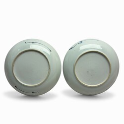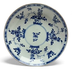 | Omschrijving | Twee 18e eeuws Chinees porseleinen diepe schotels. Blauw/wit met servetwerk op de randen en op het plat een decor van prunisbloesem op het plat.. Qianlong periode. |