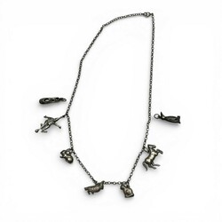 | Omschrijving | Zilveren kettinkje met diverse bedels: clown, haas, katje, paard, kaketoe, pinguïn en ballerinaslipper |