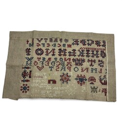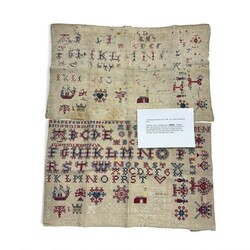 | Omschrijving | 17e eeuwse letterlap, met voorstelling van o.a. een driemaster en een kerk. Met daarbij een 21e replica |