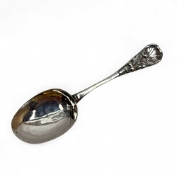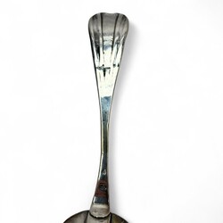 | Omschrijving | Een antieke 18e eeuws Friese zilveren lepel, aan de bovenzijde gedecoreerd met rocaille. Gemerkt met meesterteken ‘CS’ = Casparus Seth, werkzaam te Leeuwarden (1767-1821), Voet 510. |