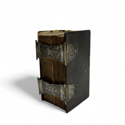 | Omschrijving | Een antieke 19e eeuwse Bijbel met dubbele tweede gehalte (835/1000) zilveren slot, mr. Cammans, Leeuwarden 1864. |