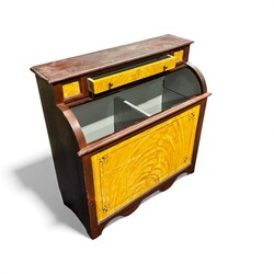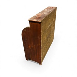 | Omschrijving | 19e eeuwse houten turfkist met getoogde bovenklep en verfdecoratie in imitatie-houtnerf. |