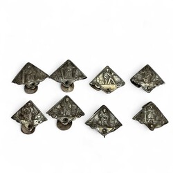 | Omschrijving | Lot van acht 18e of vroeg 19e eeuwse zilveren hoekstukken voor op een Bijbel, met voorstelling van (vermoedelijk) apostels. Enkele exemplaren gemerkt ‘PAS’ = mr. Theodorus Pas, werkzaam te Leeuwarden vanaf 1791 |