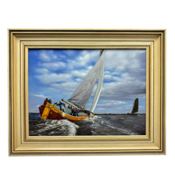 | Omschrijving | Een schilderij olieverf op doek, 30 x 40 cm. Fryslan, Skûtsjesillen op de Friese meren. Niet gesigneerd maar werk van Bart Bosma (Geb. Sneek 1951). Gelijst. |