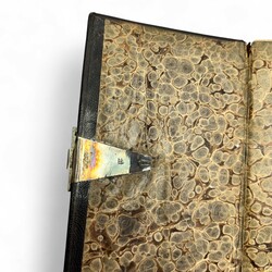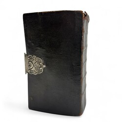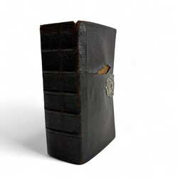 | Conditie | Lederen kaft beschadigd, enkele pagina’s los voorzijde, kaft los achterzijde, één knopje mist van slot |
