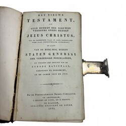 | Omschrijving | Een antieke 19e eeuwse bijbel, ‘Het Nieuwe Testament of Alle Boeken des Nieuwen Verbonds Onzes Heeren’, Joh. Enschedé en Zonen, 1861. Met tweede gehalte (835/1000) zilveren slot, gemerkt ‘PL1’ = Pieter Lammers, werkzaam te Drachten van 1858 tot 1899, jaarletter C (1862). Tevens met stippelgravure ‘A.D.S. 1863’. |