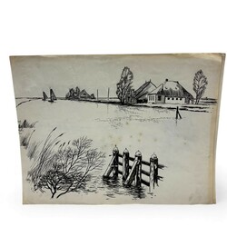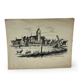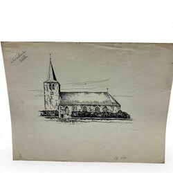 | Omschrijving | Lot diverse inkttekeningen op papier. Diverse titels: 'T Alde Roomske tsjerkje', 'Liuens omstreeks 1758', voorstelling van een fabriek, 'Raerd', 'de Wjittering', 'De Moezel sjoen fan of it heege tsjerkhof' en 'Alde tsjerke fan Easterwierrum'. Enkelen gesigneerd B.v.d.S. = Bouke van der Sloot (Franeker 1908 – Leeuwarden 1994). Met stempel 'Fries Landbouwblad'. |