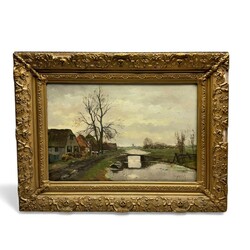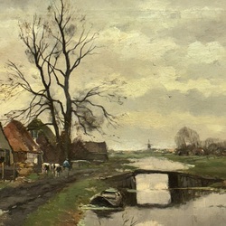 | Omschrijving | Schilderij, olieverf op doke. Polderlandschap met vaart en boer met twee koeien. Rechtsonder gesigneerd Christiaan Snijders (Rotterdam 1881 - 1943) |