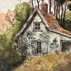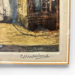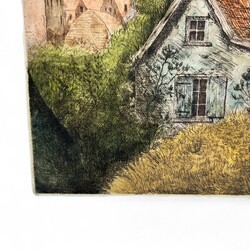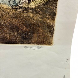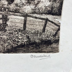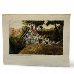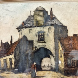 | Omschrijving | Lot van vier etsen, twee gelijst en twee ongelijst. Diverse voorstellingen: "In het Zweiersdal te Oosterbeek ", "gezicht op Nijkerk", "Vispoortje te Harderwijk" en "martinitoren te Groningen". Allen gesigneerd Cornelis van de Woerd (Nijkerk 1901 - Arnhem 1994). |