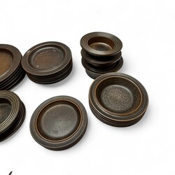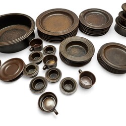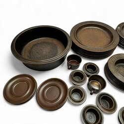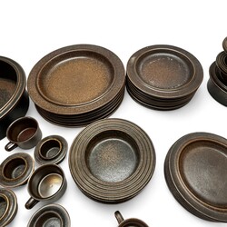 | Omschrijving | Een deel van een aardewerken servies, bestaande uit kop en schotels, kommen en een serveerschaal. Gemerkt Arabia, Finland. |