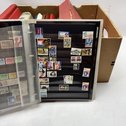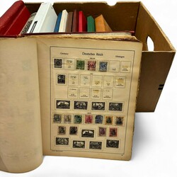| Omschrijving | Doos met diverse postzegelalbums, meeste gevuld met zegels. Nederland en internationaal. |