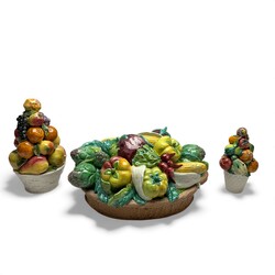 | Kavel | 1901. Drie Italiaanse polychrome tafelstukken met fruitdecor, 20e eeuw |